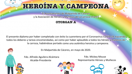 El Ayuntamiento de Malpartida de Cáceres ha repartido más de 300 diplomas de “héroes y heroínas” entre los niños malpartideños para premiar su buen comportamiento a lo largo del confinamiento